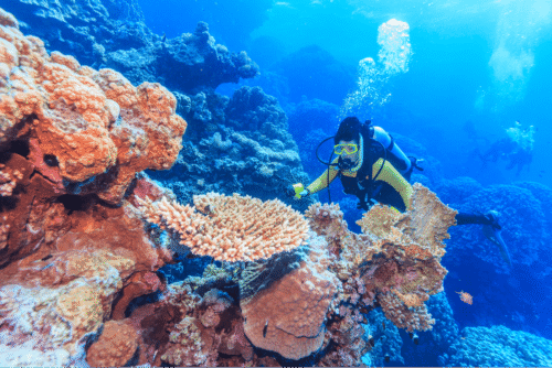 The Red Sea, one of the saltiest seas in the world, is located between Africa and Asia and covers around 438,000 km2 (169,100 mi2). Hundreds of hard and soft corals surround this area and are best seen from September to November when visibility is high. The best way to explore the underwater world of the Red Sea is by liveaboard. Diving in the Red Sea you will find unique fish species that you won’t find anywhere else, such as Great seahorse, Starspotted smooth-hound, Deepwater scorpionfish, Glowbelly, and Bigeye houndshark, among many others. Thresher shark and manta ray encounters are also famous in the Red Sea.
